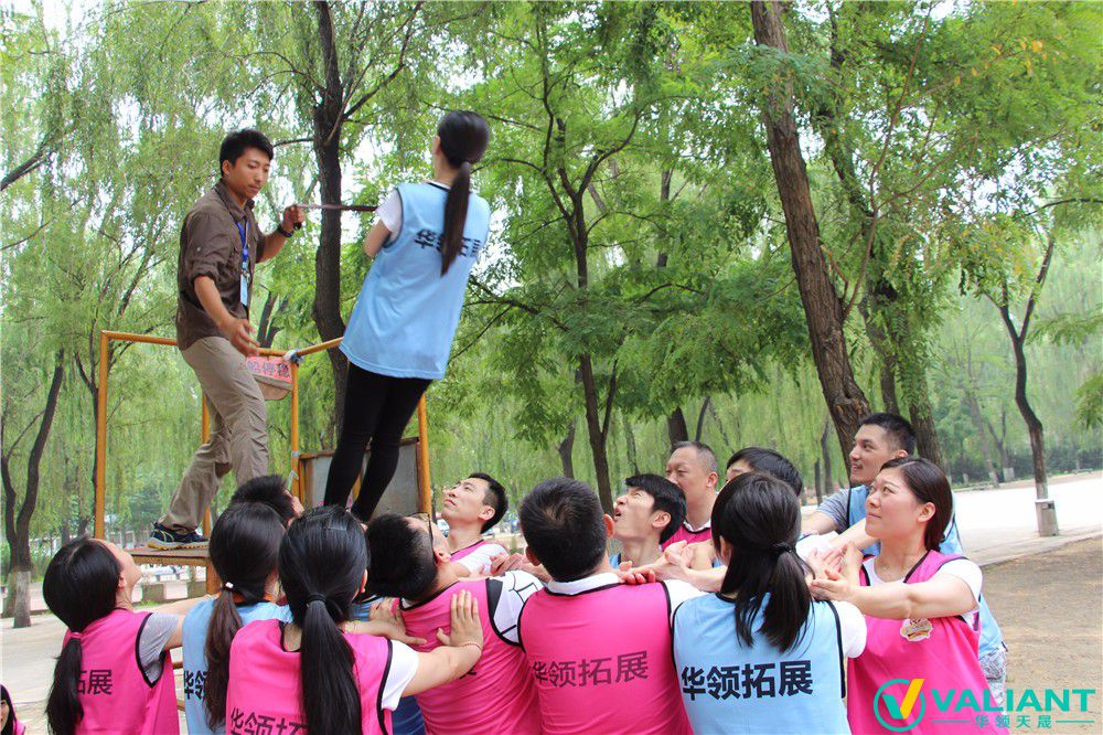 這是一項(xiàng)強(qiáng)調(diào)團(tuán)隊(duì)合作的高空項(xiàng)目。隊(duì)員都要在穿戴好安全裝備的前提下,已組為單位,沿著天梯盡力向上爬,所有隊(duì)員都腳踩第五根,手扶第六根橫木時(shí),視為項(xiàng)目成功...