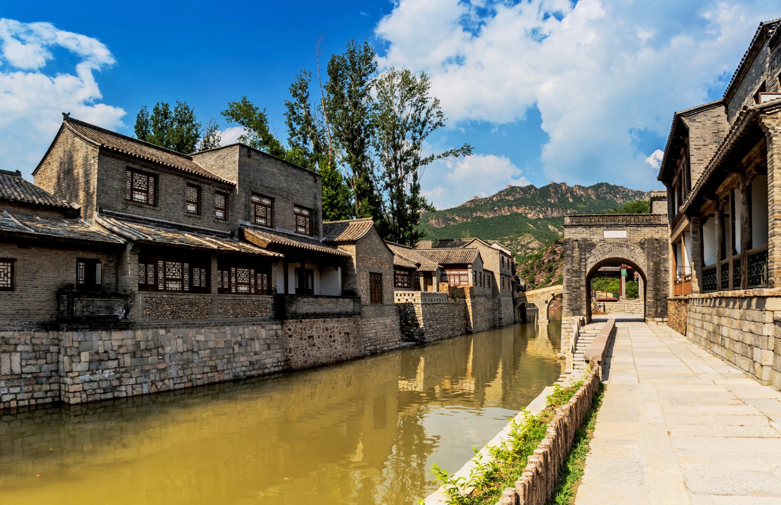古北水鎮(zhèn)位于北京市密云區(qū)古北口鎮(zhèn),坐落在司馬臺(tái)長(zhǎng)城腳下。古北口自古以雄險(xiǎn)著稱(chēng),有著優(yōu)越的軍事地理位置,《密云縣志》上描述古北口“京師北控邊塞,順天所屬以松亭、古北口、居庸三關(guān)為總要,而古北為尤沖”。古北口以其獨(dú)特的軍事文化吸引了無(wú)數(shù)文人雅士,蘇轍、劉敞、納蘭性德等文詞大家在此留下了許多名文佳句,更有康熙、乾隆皇帝多次贊頌,以“地扼襟喉趨溯漠,天留鎖鑰枕雄關(guān)”來(lái)稱(chēng)頌它地勢(shì)的險(xiǎn)峻與重要。