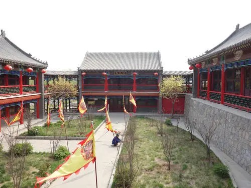 武定府署、漢王宮座落于惠民縣城北部,主要建筑包括中路的大門、儀門、德政堂、退思堂、昌華堂、怡然堂,展示知府判案和明代漢王及家眷的后宮生活場景。東路建筑有財神廟、土地廟、同知署、寅賓館,其中土地廟、同知署、寅賓館現(xiàn)為渤海老區(qū)革命機關(guān)舊址。學習紅色文化,接受革命教育。西路的建筑有通判廳、西花廳以及亭臺水榭等漢王宮的后花園,建筑風格為仿明清建筑。