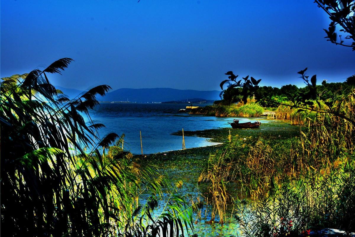 水天一色,湖清水凈