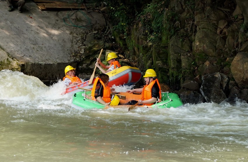 中途個(gè)隧道兩個(gè)戲水池如龍盤山,麒麟山位于拒馬河畔,河寬水清,山勢(shì)險(xiǎn)峻,奇石怪巖,星羅密布,渾然天成,步步皆景。在清幽靜謐的自然環(huán)境中,在清澈的激流浪花上,體驗(yàn)環(huán)山漂流帶來的驚險(xiǎn)刺激,用尖叫聲在這生機(jī)盎然的自然中釋放真我。